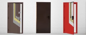 В-третьих, это усиленная конструкция. Полотна изготавливаются с гнутыми профилями. Это предотвращает его деформацию при воздействии огня. С обеих сторон дверного полотна используются металлические пластины толщиной 1,5 мм. Дверное полотно и дверная коробка снабжены специальными уплотнителями, защищающими от холодного и горячего воздуха. Полотно и внутренняя часть коробки наполнены минеральной ватой . Как правило, двери оснащены огнеупорным замком и несъемным элементом.