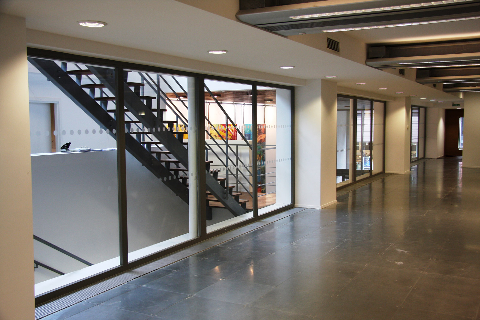 Огнестойкий витраж EI45 / серия FRM7147 может быть установлен как внутри, так и снаружи сооружения, например, при возведении пожарных переходов между зданиями или при оформлении лестничных пролётов. Главная задача данной модели — пассивная защита объектов, где наблюдается массовое скопление людей, это могут быть: